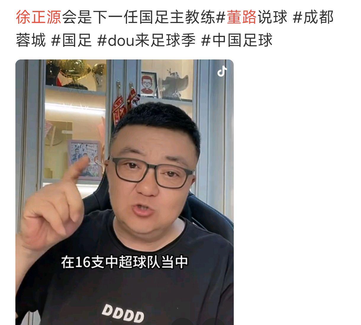 知名足球评论员董路早在社交平台推荐过徐正源执教国足, 他关于‘名帅需适配球队水平’的观点,结合国足过往经历来看,有较强合理性。