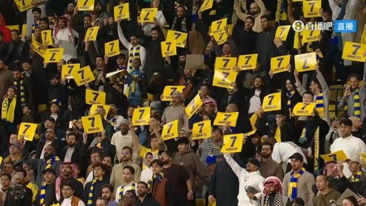 体育娱乐-支持C罗!利雅得胜利球迷第7分钟高唱C罗名字并高举7号